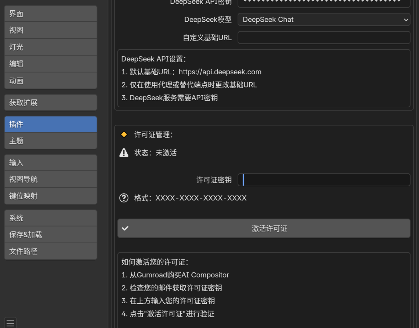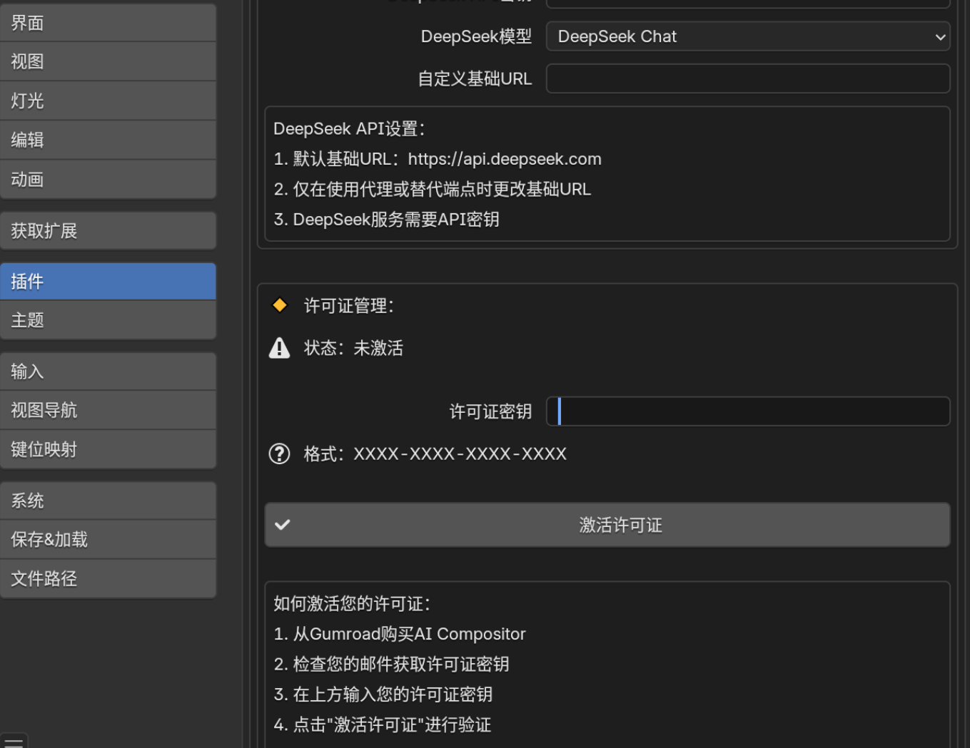 3. 安装好插件在插件设置页面,输入刚才的激活码